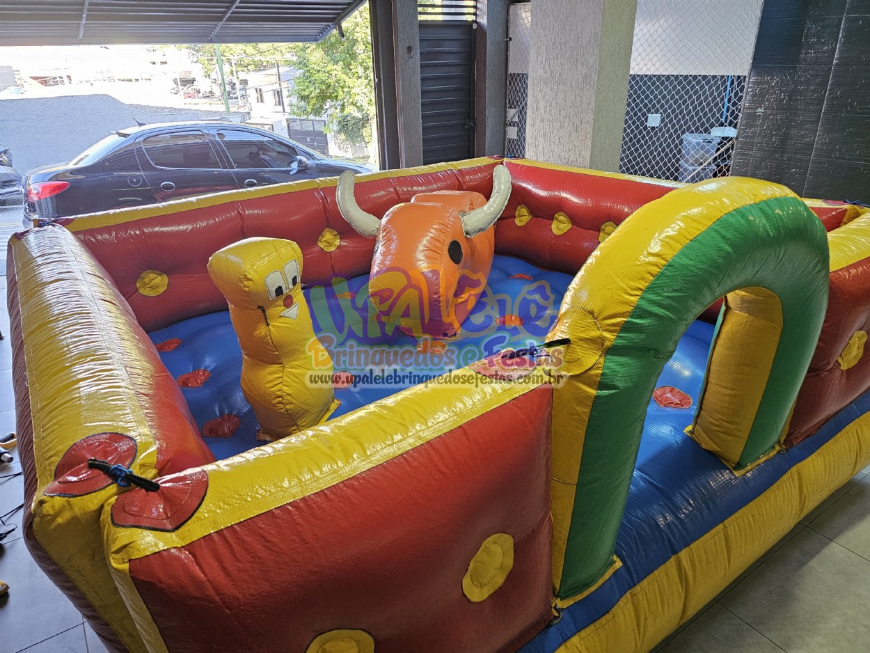 Desenvolvido com diferencial para quem busca algo inovador. É um brinquedo super interativo e resistente, suas atividades são: Pula pula, joão teimoso e touro inflável. Ideal para locações, buffets, eventos, festas infantis, aniversários, festas juninas, country, residências e condomínios.
